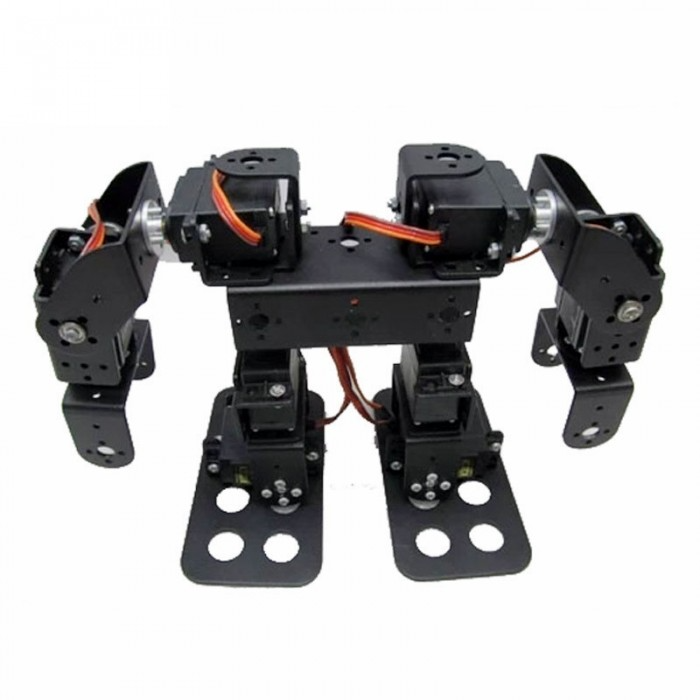 DIY 8DOF biped robot kit. Includes aluminum alloy brackets and 8 high-torque metal gear servos. Ideal for walking, dancing, and DIY robotics projects.