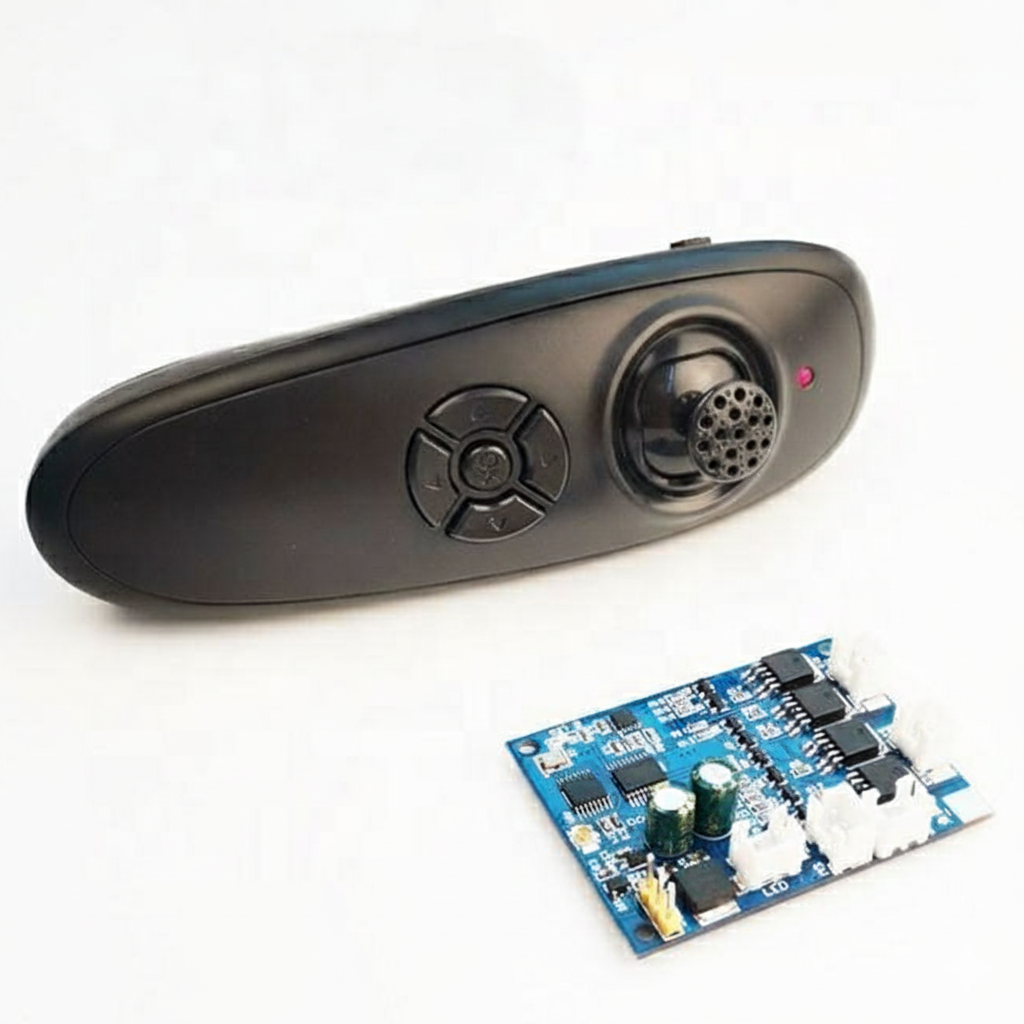 The One-Hand RC Boat Transmitter and Receiver Kit is designed for DIY bait boats and remote-controlled fishing boats. It features a built-in gyroscope for straight-line navigation, cruise control for constant-speed travel, and a powerful 500-meter control range. This system provides stable operation even in windy or wavy conditions, making it suitable for both new builds and upgrades of existing bait boats.